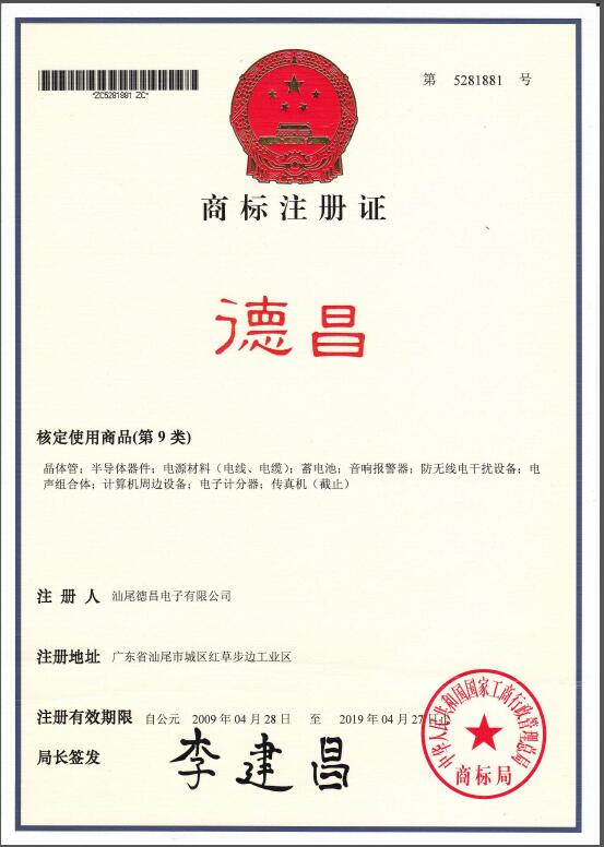是汕尾德昌電子有限公司在中國的注冊商標(biāo)之一,受法律保護,侵權(quán)必究。